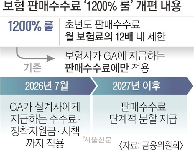 이 같은 경쟁의 배경에는 오는 7월부터 GA에도 적용되는적용되는 판매수수료 규제, 이른바 ‘1200% 룰’이 있다. 보험 설계사에게 보험판매 첫 해 지급하는 판매수수료(모집, 유지·관리, 인센티브 등)를 월납 보험료의 12배 이내로 제한하는 정책이다. 이 제도가 적용되면 첫해 수수료 총액에 상한선이 생기면서 설계사 영입이 어려워질 수 있다. 이 때문에 GA들이 제도 시행 전 우수 설계사들을 미리 확보하려는 것이다.