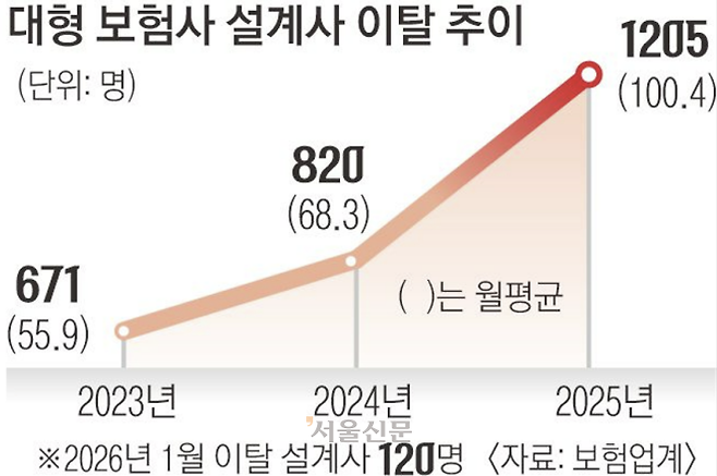 한 대형 보험사 내부 집계에 따르면 GA로 이직한 설계사는 2023년 671명에서 2024년 820명, 지난해에는 1205명으로 2년 새 2배 가까이 증가했다.