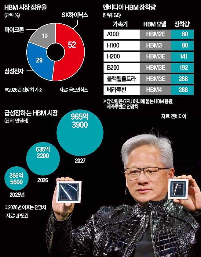 글로벌 메모리 기업은 베라루빈용 HBM4 납품전에 사활을 걸었다. HBM이 대량 장착되는 AI 가속기 시장에서 80% 넘는 점유율을 기록 중인 엔비디아를 잡으면 기술력을 인정받는 동시에 호실적을 보장받을 수 있어서다.