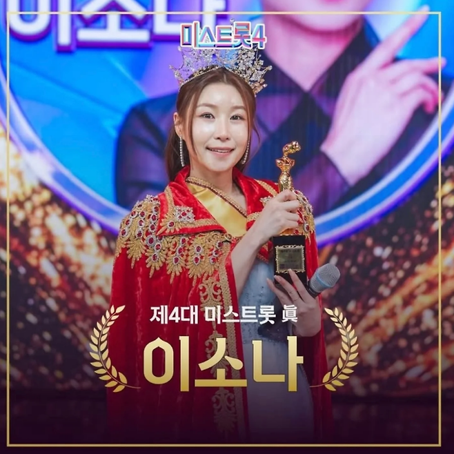 이소나의 진 왕관은 6년이라는 긴 인고의 시간 끝에 얻어낸 결실이다. 국가무형유산 제57호 경기민요 전수자이자 한국예술종합학교 출신의 재원임에도 불구하고, 그는 '미스트롯' 시즌2와 시즌3에서 잇따라 예심 탈락의 고배를 마신 바 있다. 하지만 포기하지 않고 트로트와 국악을 접목한 자신만의 색깔을 갈고닦은 끝에, 결승전에서 패티김의 '사랑은 생명의 꽃'을 완벽하게 소화하며 실시간 문자 투표로 대역전극을 써냈다.