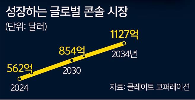 펄어비스가 오랜 기간 글로벌 시장을 겨냥해 콘솔게임을 개발해온 데는 그만한 이유가 있다. 2024년 562억 달러(약 83조원)였던 전 세계 콘솔게임 시장은 2030년 854억 달러(약 126조원)를 넘어 2034년엔 1127억 달러(166조)로 급성장할 전망이다.