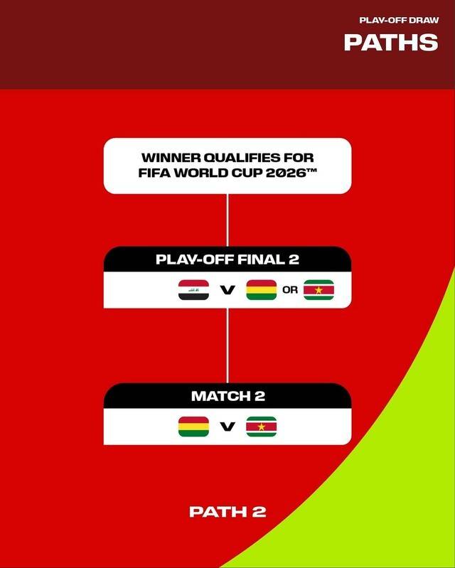 이라크는 3월 26일 열릴 볼리비아-수리남전 승자와 월드컵 본선행 티켓을 놓고 맞붙을 예정이었다. 그러나 미국과 이스라엘의 이란 공습 이후 주변 정세가 급격히 악화되면서 이라크 선수단이 큰 어려움을 겪고 있다. 미국·이스라엘·이란 사이에 미사일 공격이 이어지며 인근 지역 영공이 폐쇄된 상태라 이동 자체가 쉽지 않은 상황이다.