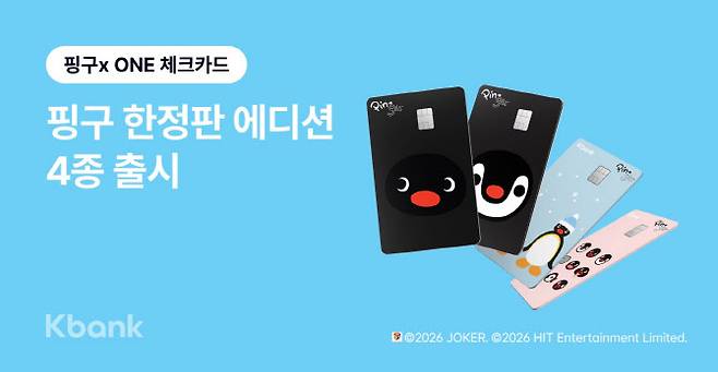 케이뱅크가 전세계적인 인기 캐릭터 '핑구'와 제휴해 ONE 체크카드 핑구 에디션을 5만장 한정 출시했다고 9일 밝혔다.