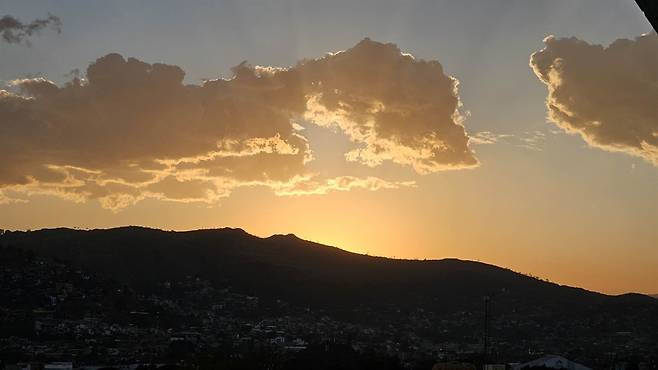 | ▲ 노을. 우리가 묵는 호스텔은 특히 사라진 문명인 몬테 알반의 산정으로 지는 노을이 아름답다. |