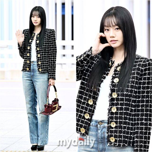혜리는 프랑스 파리에서 열리는 패션쇼 참석차 3일 오전 인천국제공항을 통해 출국했다. 이날 혜리는 블랙과 화이트 체크 패턴이 돋보이는 트위드 재킷에 데님 팬츠를 매치해 클래식하면서도 캐주얼한 공항 패션을 완성했다. 골드 버튼 디테일이 들어간 재킷은 고급스러운 분위기를 더했고, 심플한 화이트 이너와 자연스럽게 어우러지며 세련된 스타일을 연출했다. 여기에 와인 컬러의 미니 백을 포인트로 더해 전체적인 룩에 감각적인 무드를 더했다.