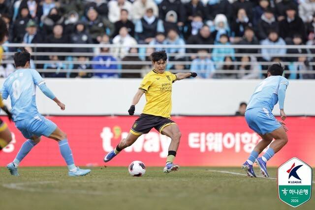 정지용은 2025시즌 K리그2에서 31경기에 출전해 6골 4도움을 기록하며 프로 무대에서 공격수로서 존재감을 드러내기 시작했다. 그리고 2026시즌 초반 페이스는 더욱 위력적이다. 시즌 첫 경기였던 경남 FC 원정에서 약 60m를 폭발적인 스피드로 질주하며 득점을 만들어냈던 정지용은 이번 대구 FC전에서도 대구 수비수 김주원의 견제를 스피드로 무너뜨리며 득점을 만들어냈다.