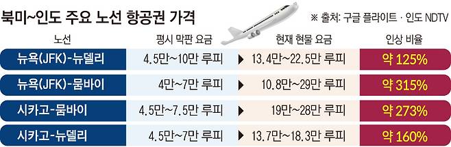美뉴욕-인도 뭄바이 항공료 315% 뛰어