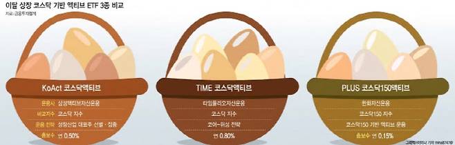 한편, 코스닥 액티브 ETF 라인업은 추가 확대될 전망이다. 한화자산운용도 이달 ‘PLUS 코스닥150액티브’ 상장을 준비하고 있다. 삼성액티브자산운용과 타임폴리오자산운용 상품이 코스닥지수를 비교지수로 삼는 것과 달리, 한화자산운용 상품은 코스닥150을 기초지수로 활용한다는 점에서 차이가 있다.