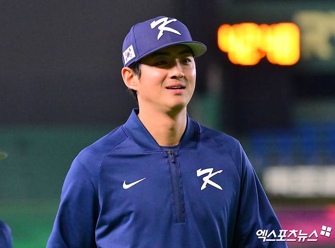 (엑스포츠뉴스 도쿄(일본), 김한준 기자) 9일 오후 일본 도쿄돔에서 열린 2026 월드베이스볼클래식(WBC) C조 한국과 호주의 경기, 한국 구자욱이 훈련에 임하고 있다.