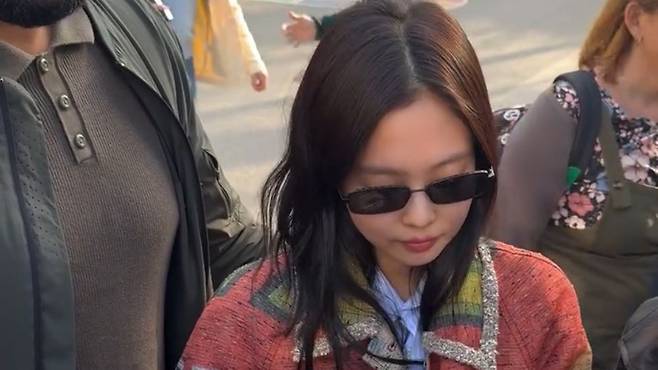 9일 해외 연예 이슈를 다루는 한 계정에는 "파리에서 팬들과 함께 있는 것이 포착됐다"는 글과 함께 제니의 모습이 담긴 영상이 올라왔다.