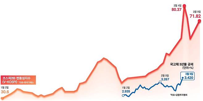 전문가들은 중동 정세가 진정되기 전까지 국내 증시의 고변동성 장세가 이어질 가능성이 크다고 보고 있다. 지정학적 긴장이 완화되면 반도체를 중심으로 한 실적 개선 기대가 다시 지수를 끌어올릴 수 있지만 반대로 긴장이 재차 고조되면 위험자산 회피 심리가 빠르게 확산하는 양상이 반복될 수밖에 없다는 진단이다. 정용택 IBK투자증권 수석연구위원은 "러시아·우크라이나 전쟁 때와 달리 이번에는 코스피가 6000선을 넘어 조정 압력이 누적된 국면에서 충격이 발생했다"며 "지수를 끌어올린 실적 기대는 여전히 유효한 만큼 향후 증시는 중동 정세 변화에 따라 큰 폭의 등락을 이어갈 것"이라고 말했다.