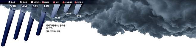 이날 원화값 급락까지 겹치면서 외국인투자자는 코스피시장에서만 3조1790억원어치를 순매도했다. 이날 선물을 1조3000억원어치 매도한 점을 고려하면 현물·선물을 다 합쳐 4조5000억원 규모 매물을 쏟아낸 것이다. 외국인은 코스닥시장에서도 5440억원어치 매도 우위를 나타냈다. 외국인 매물이 시가총액 상위 대형주에 집중되면서 지수 하락폭을 키웠다.