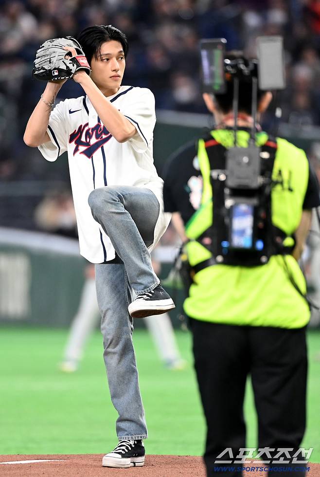 9일 일본 도쿄돔에서 열린 WBC(월드베이스볼클래식) 한국과 호주의 경기, 에이티즈 우영이 시구를 하고 있다. 도쿄(일본)=허상욱 기자wook@sportschosun.com/2026.03.09/