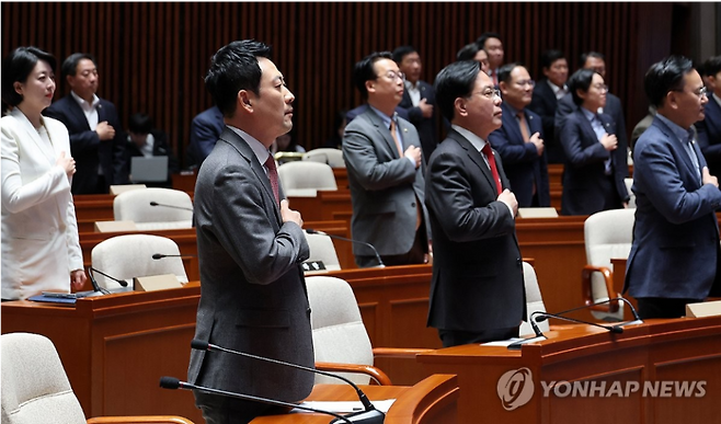 국민의힘은 9일 긴급 의원총회를 열고 소속 의원 전원 명의의 결의문을 채택했다. 결의문에서 국민의힘은 "잘못된 12·3 비상계엄 선포로 인해 큰 혼란과 실망을 드린 데 대해 다시 한번 국민 여러분께 송구한 마음으로 사과드린다"고 밝혔다.
