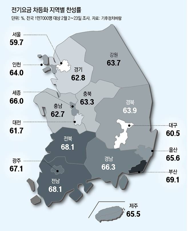 ‘전기 지산지소’ 힘 받나… 국민 63% “지역별 차등요금 찬성”