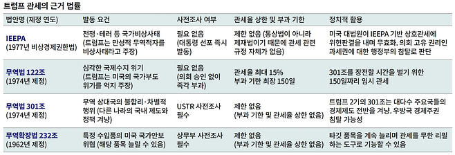 1977년 제정된 IEEPA(International Emergency Economic Powers Act)를 의역하면 ‘국제적 차원의 비상사태가 발생할 때 대통령에게 경제적 권한을 위임하는 법률’이다. 이 권한의 발동엔 ‘사전조사’ 따위가 필요 없다. 외국이 미국에 무력도발을 가했는데(비상사태), 한가하게 조사나 할 것인가.대통령이 ‘지금은 국가비상사태다’라고 선포하기만 하면 IEEPA에 규정된 권한들을 발동할 수 있다. ‘도발국과의 수출입 금지’ ‘달러 송금 및 결제 차단’ ‘미국 내 도발국의 자산 동결’ 등이다. 이 법률에 관세 관련 조항은 없다. IEEPA는 애당초 통상 관련 법률이 아니라 전쟁·테러 등 도발국을 ‘제재하기 위한 법’이었기 때문이다. 실제로 북한·러시아·이란 등이 이 법으로 제재받은 바 있다.