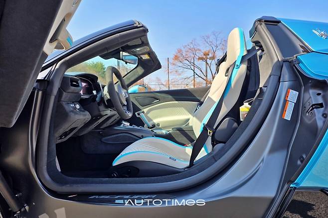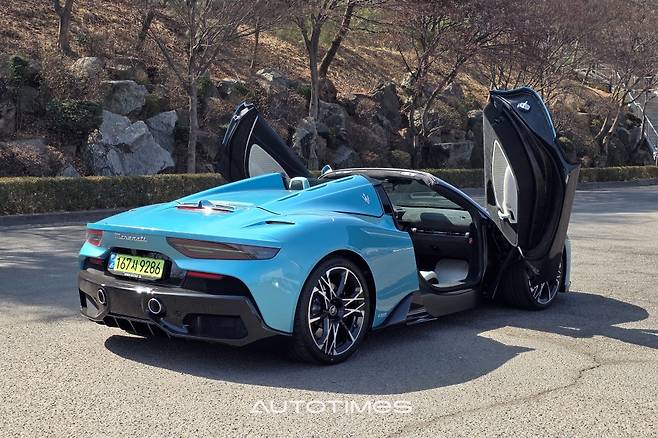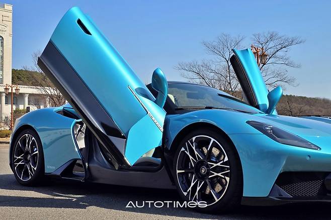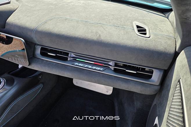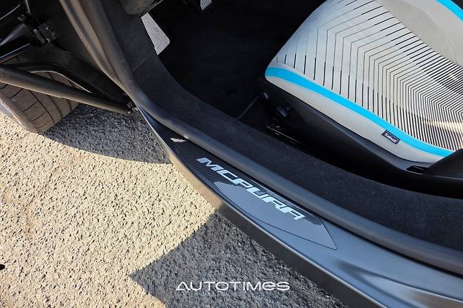 두툼한 버터플라이 도어를 열어본다. 앞바퀴가 온전히 노출돼 있고 도어 플레이트에는 탄소섬유로 MC푸라 레터링이 표현돼 있다. 탑승을 위한 단편적인 시선만 보더라도 이 차가 무척 특별하다는 사실을 알게 해준다. 이후 실내에 들어오면 또 다른 세상이 펼쳐진다. 스포츠 드라이빙에 집중할 수밖에 없는 구조를 지니면서도 사치스럽고 호화롭기 때문이다.