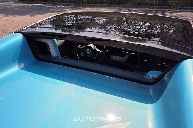 흥분을 가라앉히고 다시 GT모드로 돌린 다음에 톱을 열었다. 맹렬히 질주하던 차의 모습은 사라지고 차분하고 고급스러운 오픈에어링 슈퍼카로 성격을 바꿨다. 여과 장치 없이 실내로 들어오는 봄바람과 햇살, 그리고 은은하게 스며드는 자연의 향기가 순식간에 분위기를 바꿔 놓는다. 머리 위로 펼쳐지는 하늘과 주변 풍경은 그 자체로 하나의 장면이 된다.