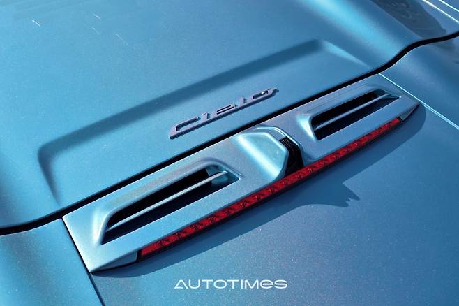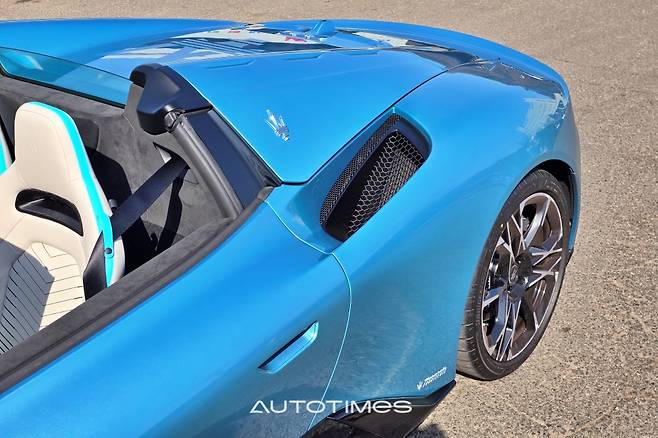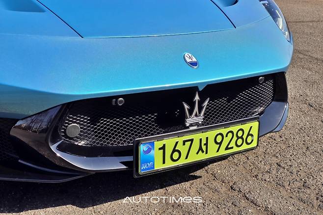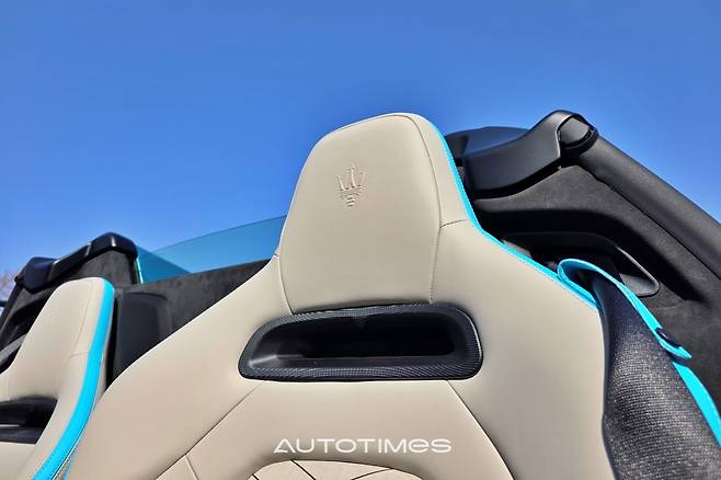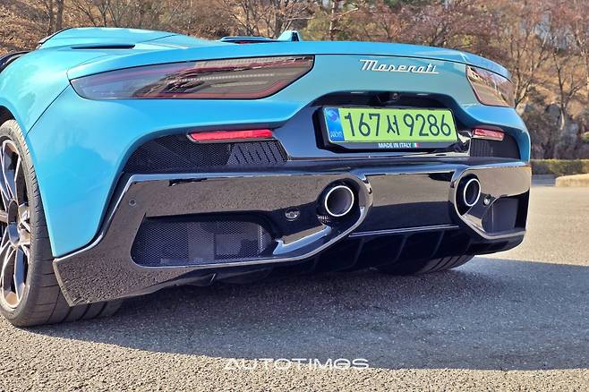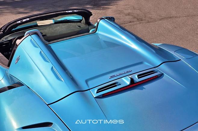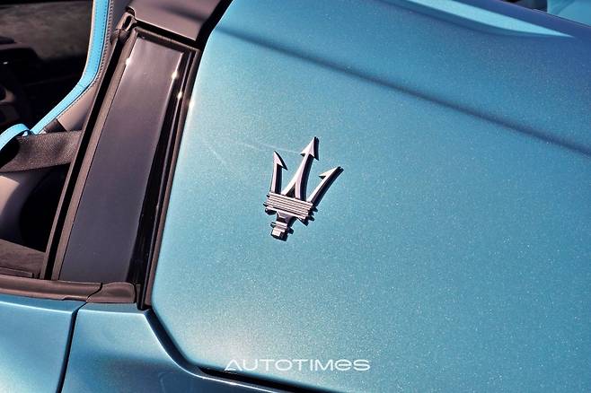 절정은 뒤로 향한다. 오픈카를 뜻하는 첼로 레터링과 수직으로 표현돼 있는 작은 쪽 창, 가로로 긴 테일램프, 베일 것처럼 날카로운 디퓨저 등이 슈퍼카의 덕목을 온전히 채운다. 이 외에 볼록하게 솟은 양쪽 기둥 사이로 거대한 마세라티 엠블럼이 페인트로 표시돼 있는데 차체 컬러와 자연스럽게 녹아 있어 빛을 받는 순간에만 드러난다. 제법 신선하고 센스있는 포인트가된다.