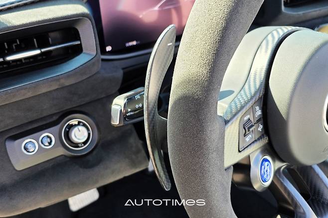 이와 함께 정면에서 마주하는 더블 D컷 형태의 스티어링 휠은 손에 쥐는 맛이 좋다. 사이즈가 작고 시동 및 런치 컨트롤 버튼 등이 함께 마련돼 있어 한결 편리하다. 마세라티를 상징하는 크고 길쭉한 패들시프트도 마음에 든다. 통 카본으로 만들었는데 절도있는 조작감이 끝내준다.