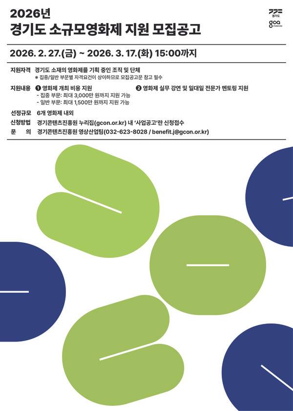 ○ 조혜빈: 지난 2월 27일부터 저희가 공고 접수를 시작했고요. 3월 17일 3시까지 온라인으로 접수가 가능합니다. 그 자세한 내용은 저희 경기 콘텐츠 진흥원 홈페이지에 접속하셔서 사업 공고에서 2026년 경기도 소규모 영화제 지원 모집 공고문으로 확인하실 수 있습니다.