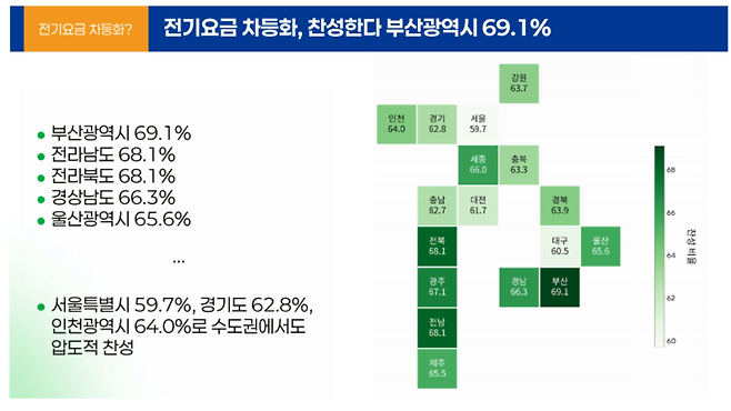 ■ '전기요금 차등제' 찬성 63%…'불리한 수도권도 찬성률 높아'