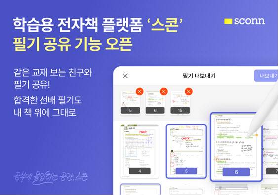 학습용 전자책 플랫폼 스콘(SCONN)이 학습자 간 필기를 공유할 수 있는 기능을 새롭게 도입했다.