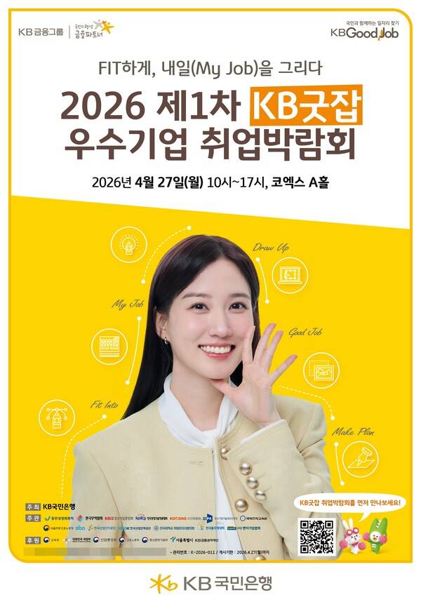 [스포츠한국 홍성완 기자] KB국민은행이 오는 20일까지 '2026 제1차 KB굿잡 우수기업 취업박람회' 참가 기업을 모집한다고 10일 밝혔다.