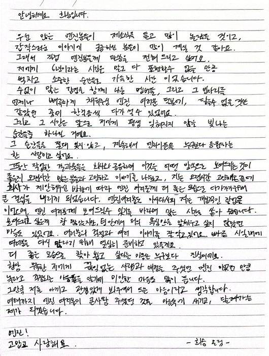 '솔로 전향' 엔하이픈 희승, 자필편지로 인사.."더 좋은 모습 위해 큰결심"[전문]