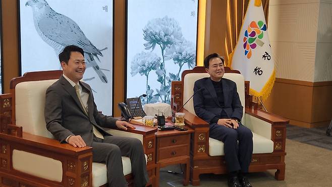 | ▲ 장동혁 국민의힘 당대표가 10일 충남도청을 방문해 김태흠 충남지사를 만났다. |