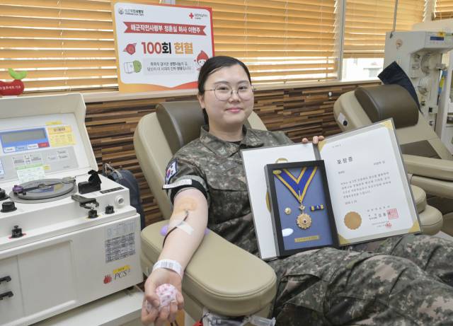 이 하사는 30회 달성으로 은장을 수상한 뒤 3년 8개월 만에 50회를 기록했고, 4년이 채 안 되는 기간에 100회를 돌파했다. 여기엔 나름의 이유가 있었다. 대학교 때 디자인학부를 전공한 이 하사는 “당시 전공 특성상 밤을 새는 작업이 많았고, 꾸준히 헌혈하기엔 체력적인 어려움이 있었다”며 “졸업 후엔 계속 헌혈에 참여하려 했고 지금에 이른 것 같다”고 밝혔다.