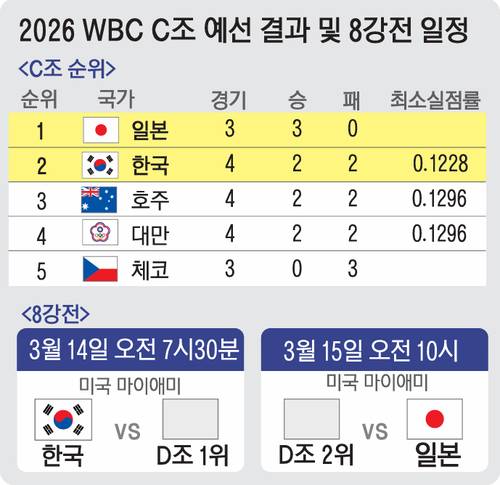 이로써 한국은 WBC에서 2009년 준우승 이후 17년 만에 조별리그를 통과하게 됐다.