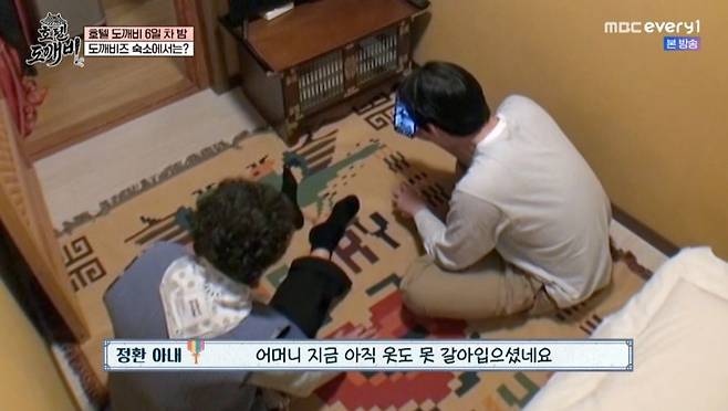 취침 준비 중에도 모자의 티격태격 디툼은 이어졌다. 1박 2일 일정에도 김정환이 면도기, 화장품 등 기본용품들을 챙기지 않은 것이 발단. 고두심은 그런 김정환을 위해 자신의 화장품과 호텔에 배치된 면도기를 내주면서도 "넌 뭐하는 애니? 좀 너무하지 않나"라며 잔소리를 쏟아냈다.