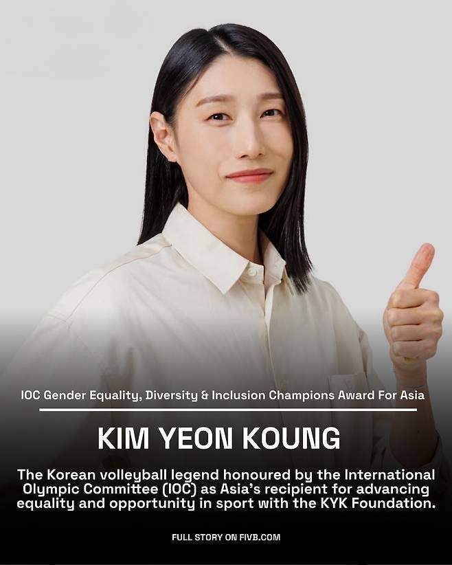 대한민국 배구 전설인 김연경 KYK재단 이사장이 국제올림픽위원회(IOC)로부터 큰 상을 받는다.
