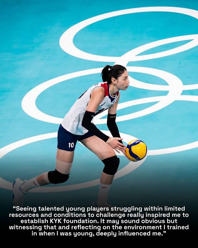 나아가 "주된 업적은 2024년 창설하고 회장으로 있는 KYK재단이다. 창립 목표는 장기적이고 구조적인 어린 선수들을 지원하며 배구의 지속적인 참여를 제한할 수 있는 경제적, 구조적 장벽을 해결하기 위해 만들어졌다"라며 재단 활동이 많은 기여를 하고 있다고 밝혔다.