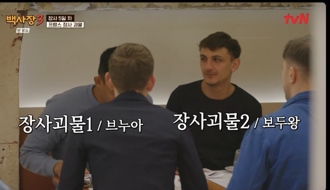 이 가운데 특별한 손님들도 등장했다. 유독 주방에 있는 백종원을 찾던 이들은 바로 인근 상권에서 유명한 레스토랑 ‘부숑집’ 사장과 직원들이었다. 이들은 작은 가게에서 시작해 현재 총 6개의 매장을 운영, 한 매장당 연매출 약 24억 원을 기록하며 총 145억 원 매출을 올리고 있는 ‘메르시에르 거리의 장사 괴물’로 알려진 인물들이었다.