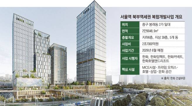서울역 북부역세권 개발 사업은 서울역 뒤편 유휴 철도용지 2만9093.4㎡(연면적 약 35만㎡)에 지하 6층~지상 39층 규모 복합단지 5개 동을 2029년 6월까지 조성하는 프로젝트다. 국제회의시설과 전시장, 호텔, 업무시설, 판매시설 등이 들어설 예정이다. 현재 기준 공정률은 약 12% 수준이며 공사비는 3조1000억원에 달한다.