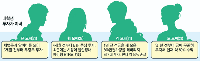 회원 모집을 마친 대학 주식투자 동아리 회장들은 올해 유독 경쟁률이 치열했다고 입을 모았다. 고려대 가치투자 동아리 회장 서준영 씨(25)는 “올해 경쟁률이 전년 동기 대비 2~3배 뛰어서 기존에 뽑던 인원보다 더 충원했다”고 밝혔다. 고려대의 또 다른 가치투자학회 회장 A씨는 이번에는 유달리 주식에 대해 잘 모르는 ‘노베이스’ 지원자도 많았다고 말했다. 그는 “지난해보다 증시가 호황이어서 주식에 대해 잘 모르거나 가볍게 투자해온 학생들도 지원을 많이 한 것 같다”고 덧붙였다.