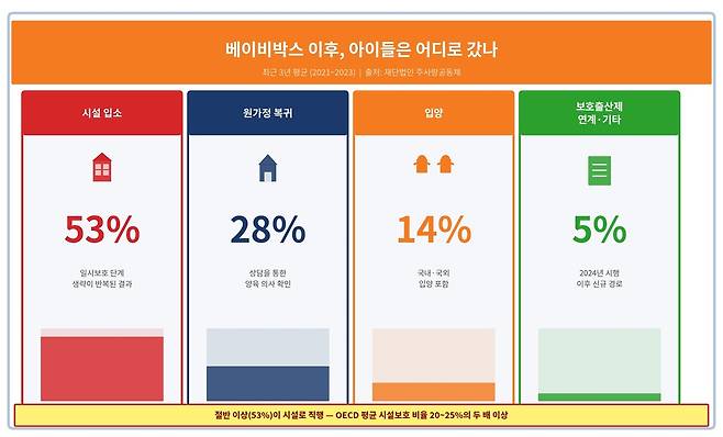 | ▲ 베이비박스 이후 아이들이 간 경로는 시설이 압도적이다. |