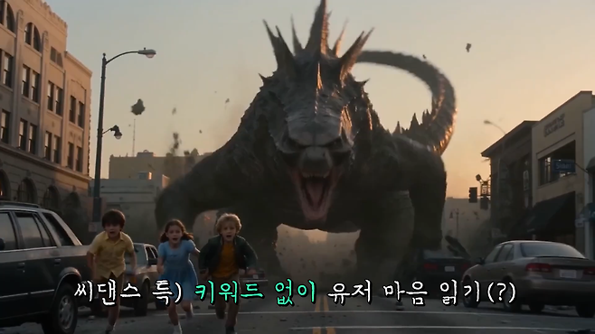 씨댄스에다가 뿔 달린 도마뱀 같은 괴수를 만들어달라고 하면 이렇게 그냥 고질라를 만들어냅니다. 고질라라는 키워드를 입력하지 않았음에도 불구하고 말이죠.