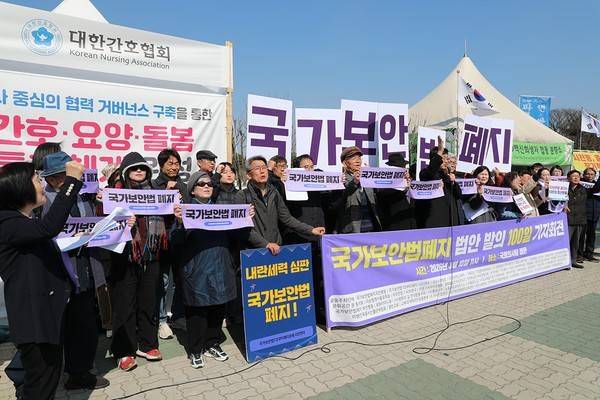 오늘은 지난 2025년 12월 1일 22대 국회의원 31명이 '국가보안법폐지 법안을 발의한 지 100일'이 되는 날이다. 국가보안법을 속히 폐지할 것을 촉구한다. 우리는 22대 국회의원들이 빠른 시간 안에 국가보안법을 폐지할 수 있도록, '국가보안법폐지 법안 발의 200일, 300일 기자회견 및 촉구대회' 등 각종 실천활동을 진행할 것이다. 우리는 내란청산과 정의롭고 평화로운 민주사회를 위해, 국가보안법 폐지를 위한 적극적이고 지속적인 실천 활동을 전개할 것이다.