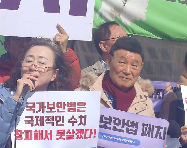 국가보안법 피해자 가족들의 규탄 발언도 이어졌다. 국가보안법으로 수감중인 이정훈의 아내 구선옥씨는 "남편은 폭력을 저지른 사람도, 누군가의 생명을 해친 사람도 아니다. 그럼에도 생각과 표현을 이유로 자유를 박탈당한 채 감옥에 갇혀 있다.국회는 더 이상 미루지 말고 국가보안법을 당장 폐지해 감옥에 있는 사람들과 그 가족들의 삶을 되돌려 주어야 한다"고 호소했다.