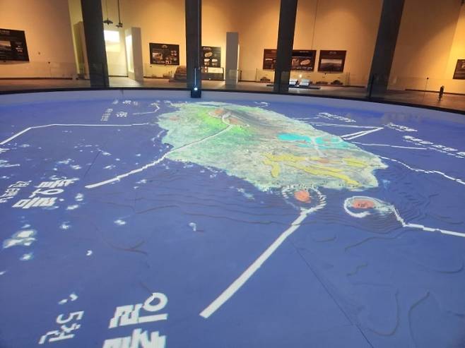 | ▲ 뜨거운 용암이 분출되어 섬이 만들어지는 역동적인 과정을 시각적으로 구현하여 제주의 기원을 생생하게 전한다. |
