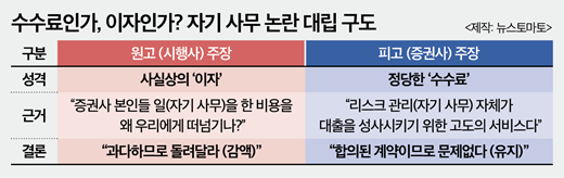 이에 대해 시행사 측은 자기 사무라면 지급된 수수료는 결국 돈을 빌린 대가인 '이자' 성격으로 볼 수밖에 없다며 역공에 나섰습니다. 수수료가 실질적인 이자로 규정될 경우 이자제한법 등에 따라 감액될 수 있습니다. 이에 자기 사무 수수료를 인정한다면, 그것이 이자에 해당하는지에 대해서도 분명한 견해를 밝힐 것을 증권사들에 요구했습니다.