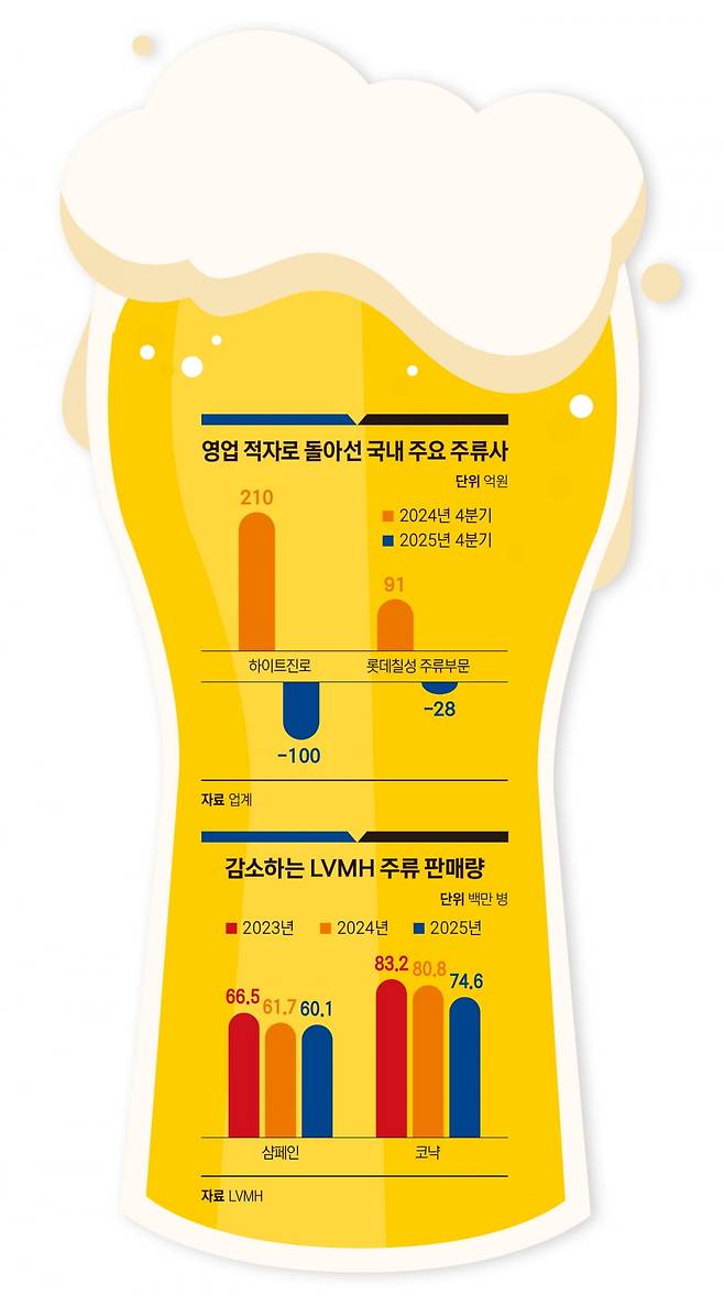하이트진로 실적만 봐도 이런 사실이 나타나는데요. 이 회사의 작년 4분기 매출은 9% 넘게 감소했고 영업이익은 적자로 돌아섰습니다. 롯데칠성음료 주류 부문도 4분기에 적자를 냈습니다. 이 회사의 맥주 매출은 내수 시장에서 31%나 급감한 것으로 나타났습니다. 사람들이 술 자체를 멀리하는 ‘헬시 플레저’, ‘노 알코올’ 트렌드가 확산하고 있는 영향입니다. 주류 산업에 불어닥친 ‘한파’가 어느 정도 수준인지, 다시 회복할 가능성은 있는지 알아봤습니다.