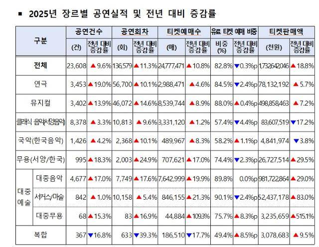클래식·국악 제외 전 장르 티켓 판매액 증가