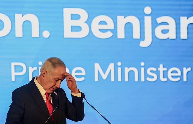 | ▲ 이스라엘 총리 베냐민 네타냐후가 지난 2월 15일 예루살렘에서 열린 미국 주요 유대인 단체 회장 회의에서 연설하며 손짓하고 있다. |