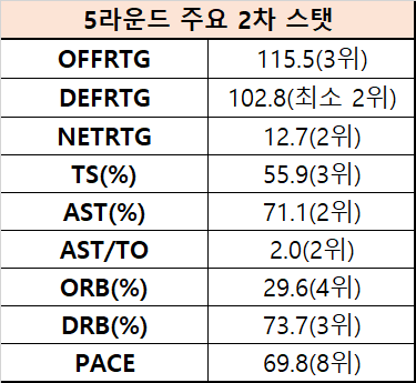 * AST/TO : 안정성 있게 득점을 위한 어시스트를 잘 전달한 팀이 높은 수치를 기록
