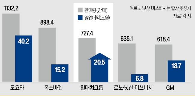 글로벌 판매 순위 3위인 현대차그룹이 연간 영업이익에서 2위인 폭스바겐을 앞선 것은 이번이 처음이다.