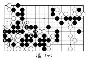 <참고도> 흑2에 이으면 백이 3에 끊고 9·11로 조여 붙여 이득을 본다.